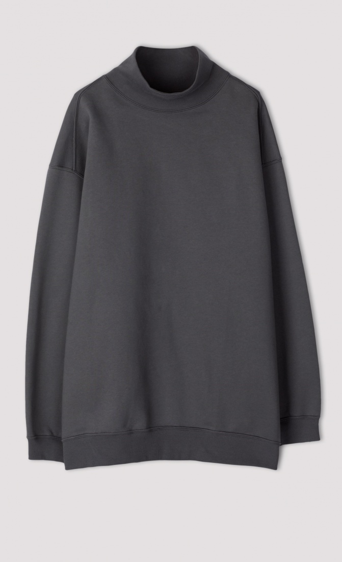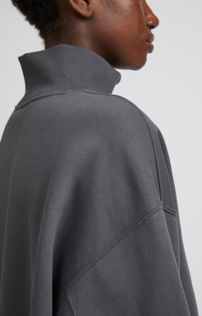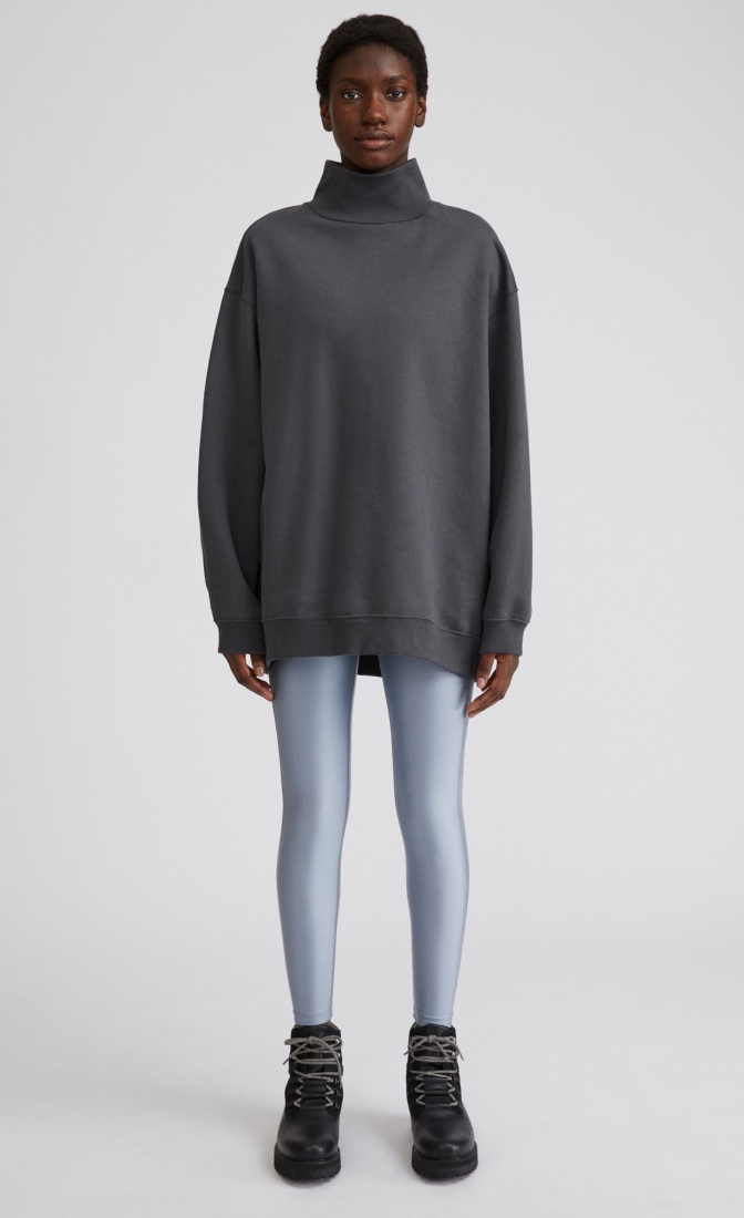Designed with a funnel neck, slightly voluminous sleeves and ribbed trims.