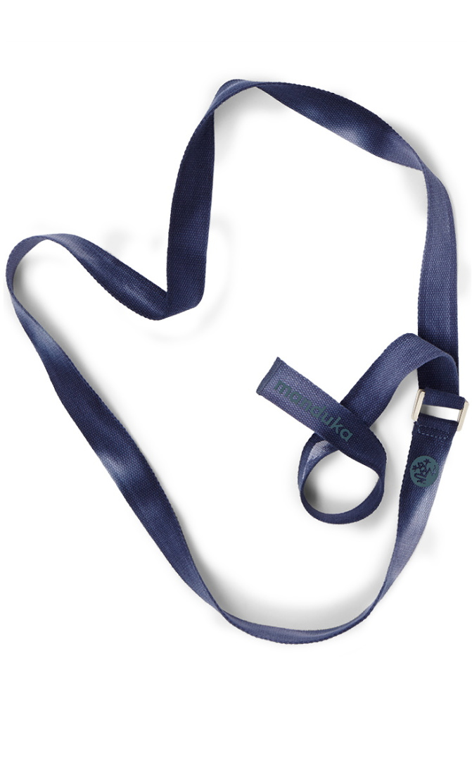 Manduka's UNfold strap has a squared profiel traditional D-ring buckle and is made of 100% recycled polyester.
