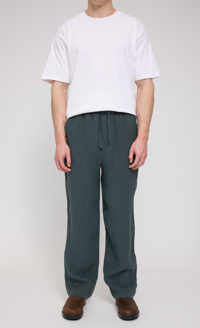 100% Linen mesn panmts by Mazine in green-grey color.